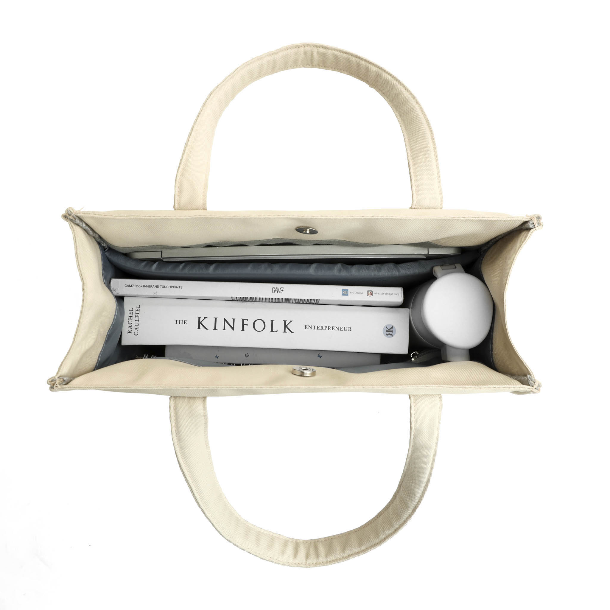 Nhờ vào tính đơn giản và thiết kế mở rộng, túi tote có thể chứa đựng nhiều đồ dùng cá nhân từ sách vở, laptop đến các vật dụng hàng ngày khác một cách dễ dàng.