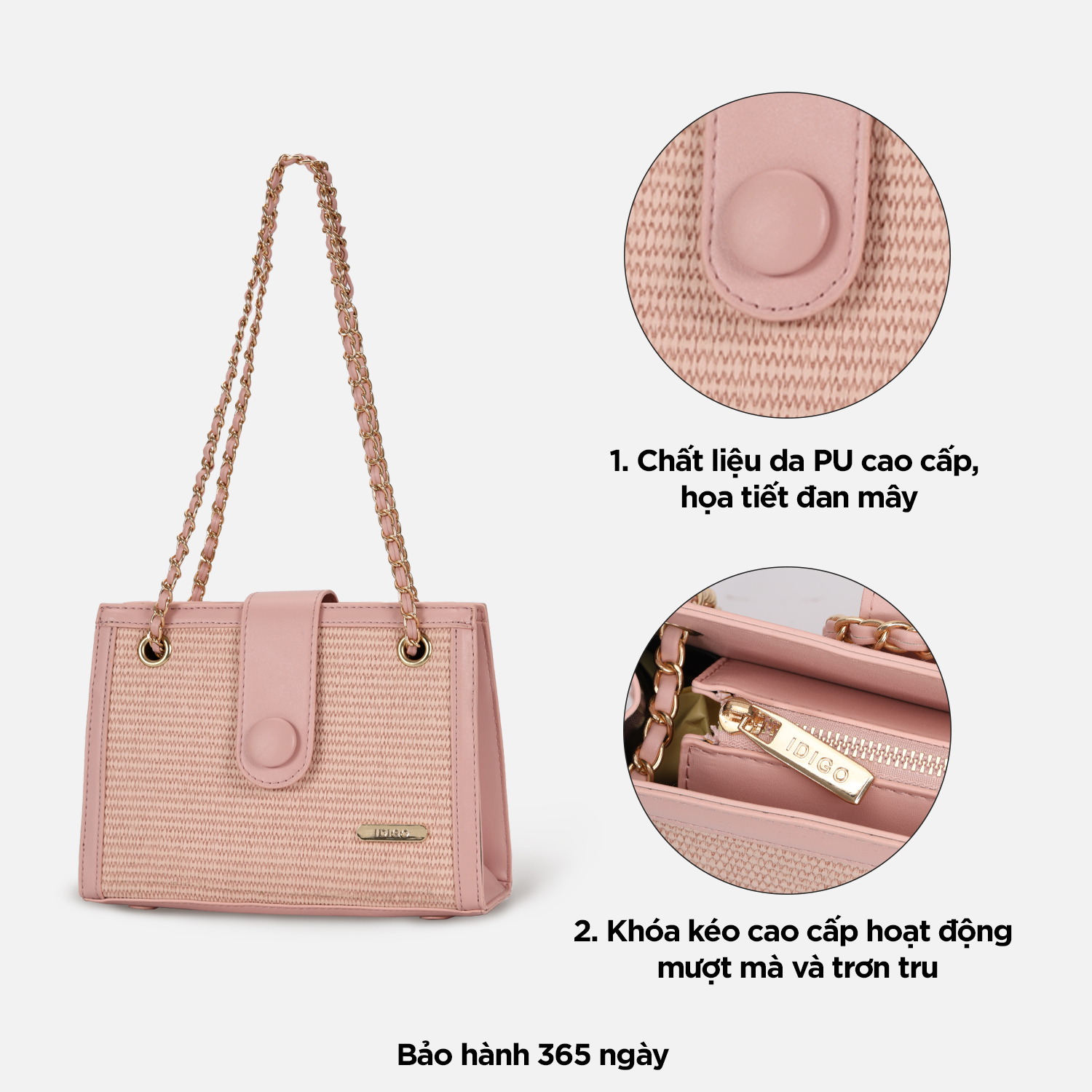 ✨Túi xách nữ đeo vai công sở phom đứng, túi đeo chéo nữ họa tiết đan mây phối dây xích IDIGO FB2 - 5061