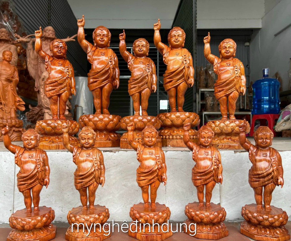 Tượng Phật đản sinh đứng trên đài sen gỗ hương đá | Đồ Gỗ Hướng Mai