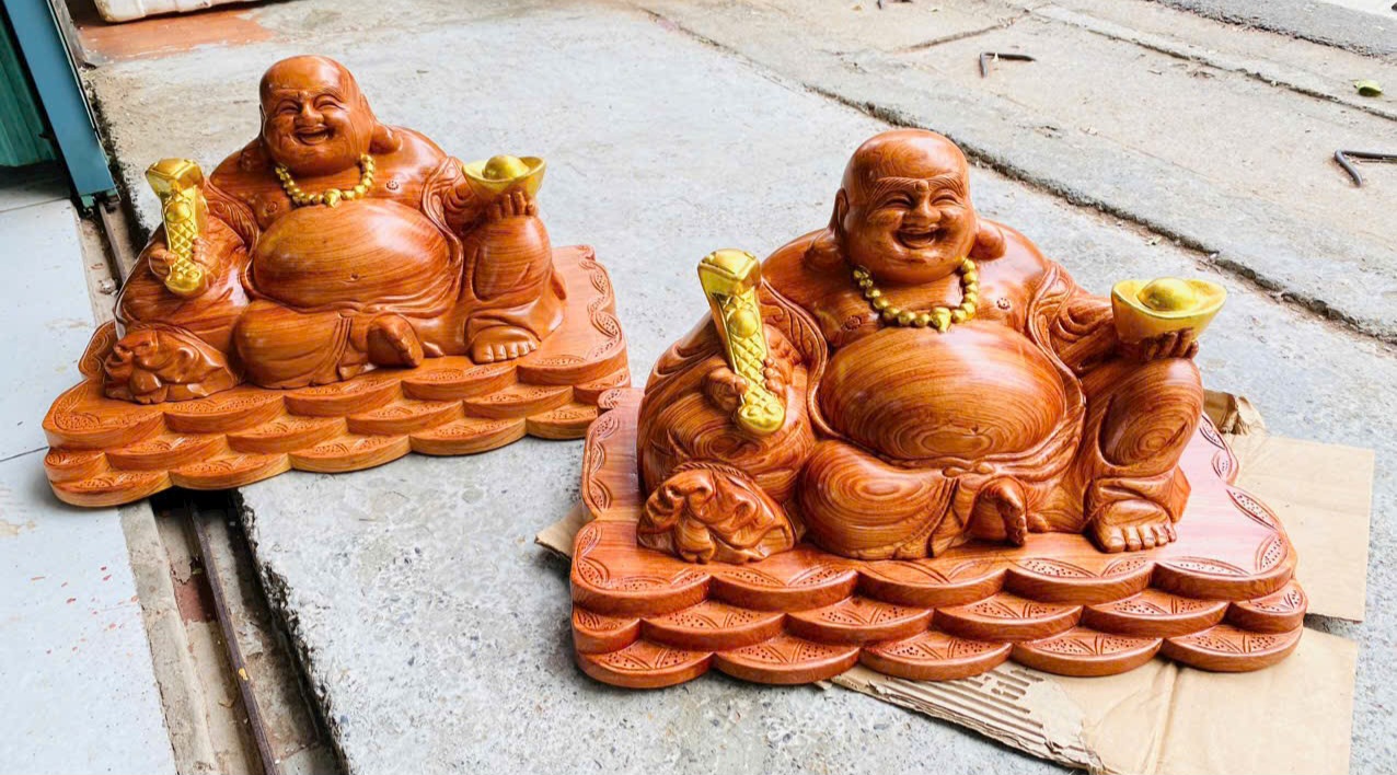 Tượng Phật Di Lặc gỗ hương đá KT 600x350 đang trưng bày tại Đồ gỗ mỹ nghệ cao cấp Đồng Kỵ