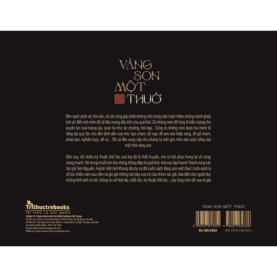 Vàng son một thuở sẽ đóng vai một cây cầu nhỏ, góp phần nối quá khứ với tương lai bằng các món đồ đa dạng xuất xứ: có những món từng là biểu tượng cho quyền lực của hoàng gia, quan lại như: ấn chương, bài ngà… Cũng có những món được lưu hành từ tầng lớp quý tộc cho đến bình dân xưa như: bạc chạm, đồ ngà, đồ sơn son thếp vàng, đồ gỗ chạm, pháp lam, nghiên mực, đồ sứ… Đến nay, rất nhiều kỹ thuật chế tác xưa kia đã bị thất truyền, mà cơ hội phục hưng lại vô cùng mong manh. Nhưng với mong muốn lan tỏa những thông điệp từ quá khứ, các tác giả và Tri Thức Trẻ Books đã cố gắng đưa đến cho độc giả một tác phẩm với chất lượng in ấn tốt nhất, những thông tin rõ ràng nhất, hình ảnh rõ nét nhất, cũng như cung cấp thông tin về thời đại, chất liệu, kỹ thuật chế tác… của từng món đồ xưa vô giá.