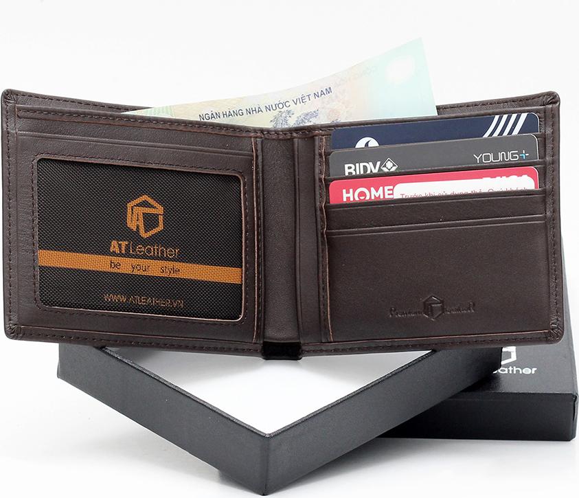 ✨Ví da bò nam cao cấp AT Leather 061 (11.5 x 10.5 cm) - Nâu