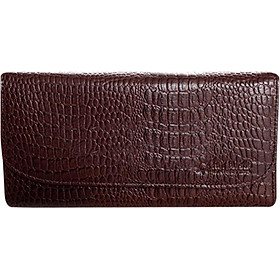 Ví/Bóp nữ da bò Huy Hoàng vân cá sấu lớn 3 gấp màu nâu đỏ 3169