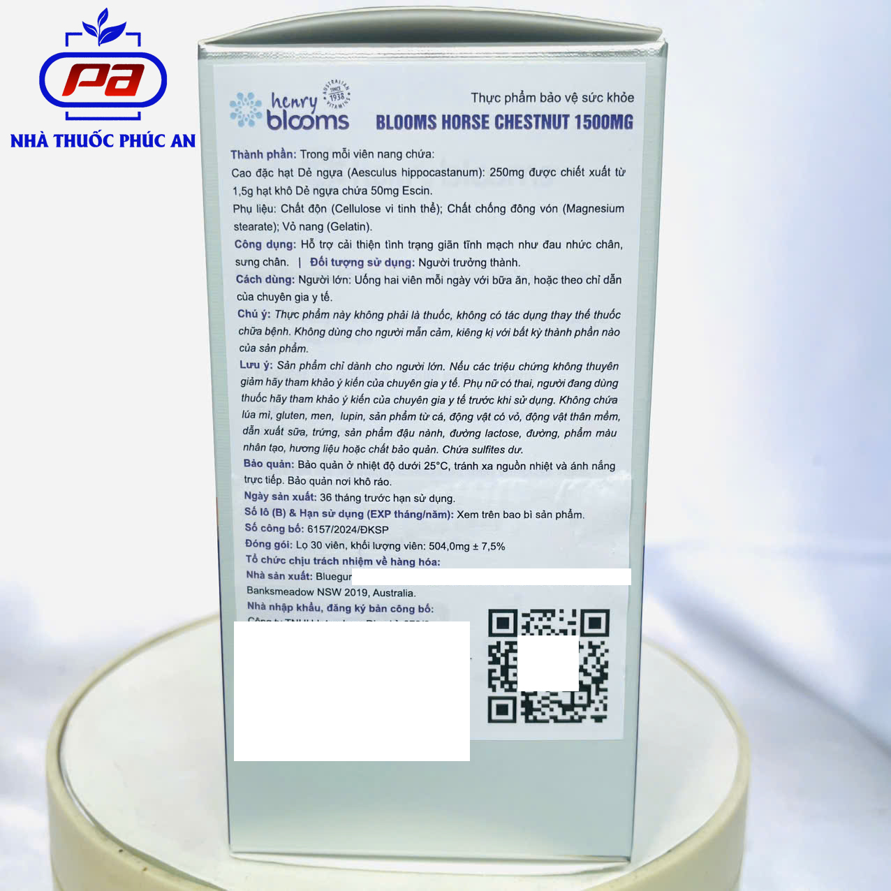 TPBVSK hỗ trợ suy giãn tĩnh mạch Henry Blooms Horse Chestnut 1500ml 30 viên THÀNH PHẦN: Mỗi viên nang chứa: - Chiết xuất hạt Aesculus hippocastanum khô cô đặc 250mg từ hạt khô 1,5g