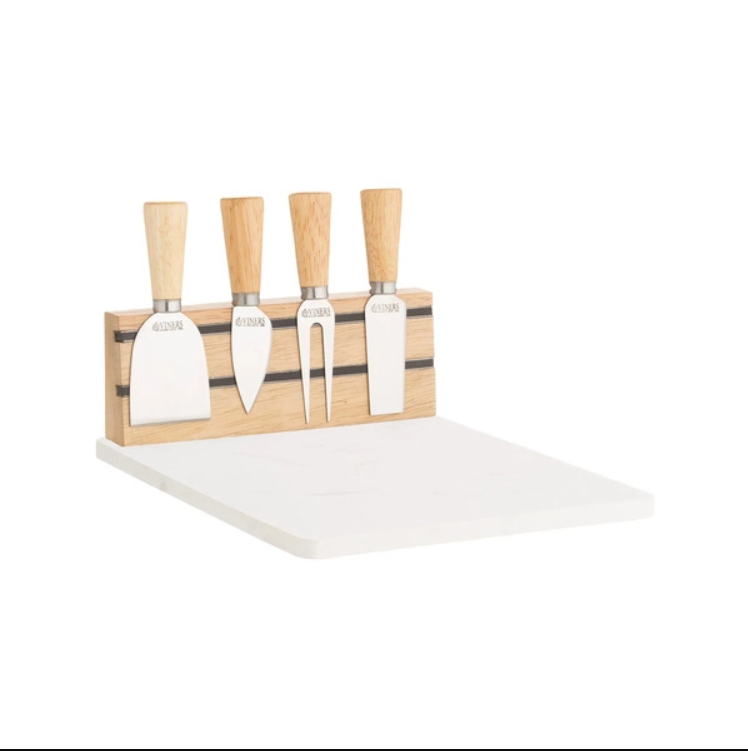 Bộ dao phô mai 5 món là sản phẩm của thương hiệu Viners đến từ Anh. Sản phẩm chuyên dùng để cắt các phô mai cứng, mềm và để trưng bày, phục vụ. Chất liệu