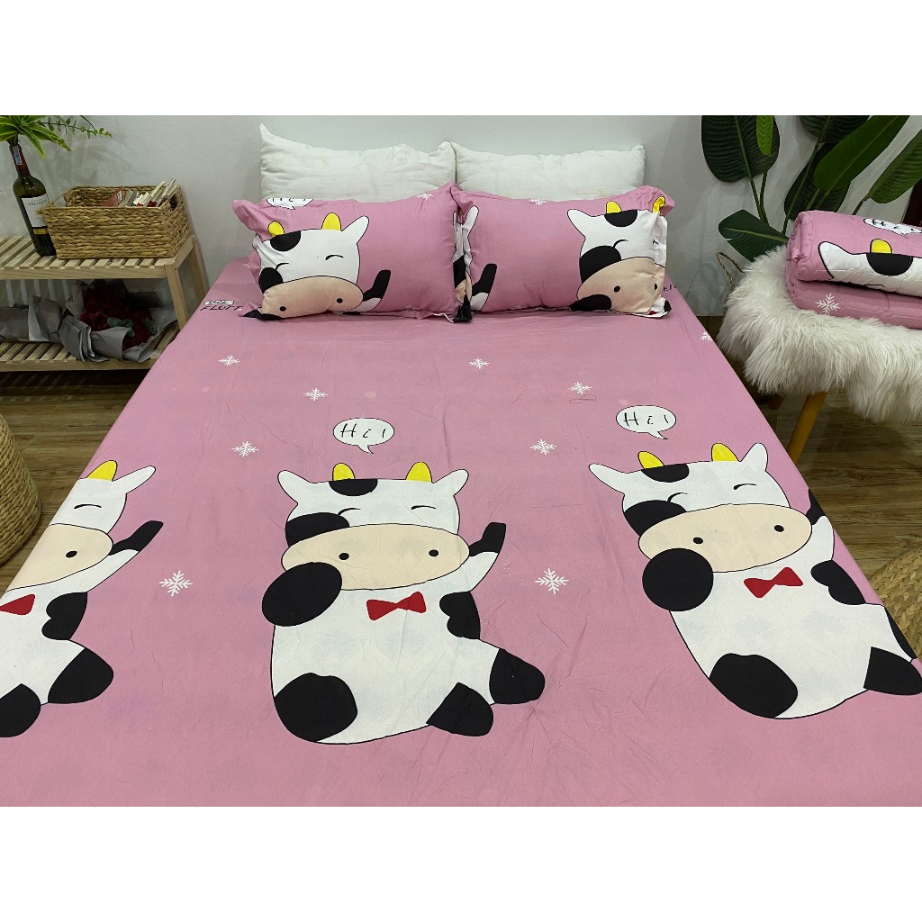 Bộ Ga Gối 3 món Cotton Poly Mẫu Xinh, Drap Giường m4 m6 m8, Ga Trải Giường Và 2 Vỏ Gối Nằm