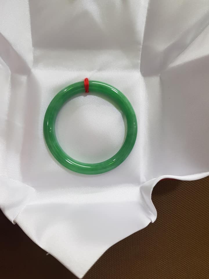 Vòng CẨM THẠCH DLý 49 Ni 49mm x cọng 7mm Màu Xanh Lá Đậm Hợp Nữ mệnh Mộc Hỏa Cân nặng 45kg -> 51kg đeo xinh tay ạ Sản phẩm này là tài sản