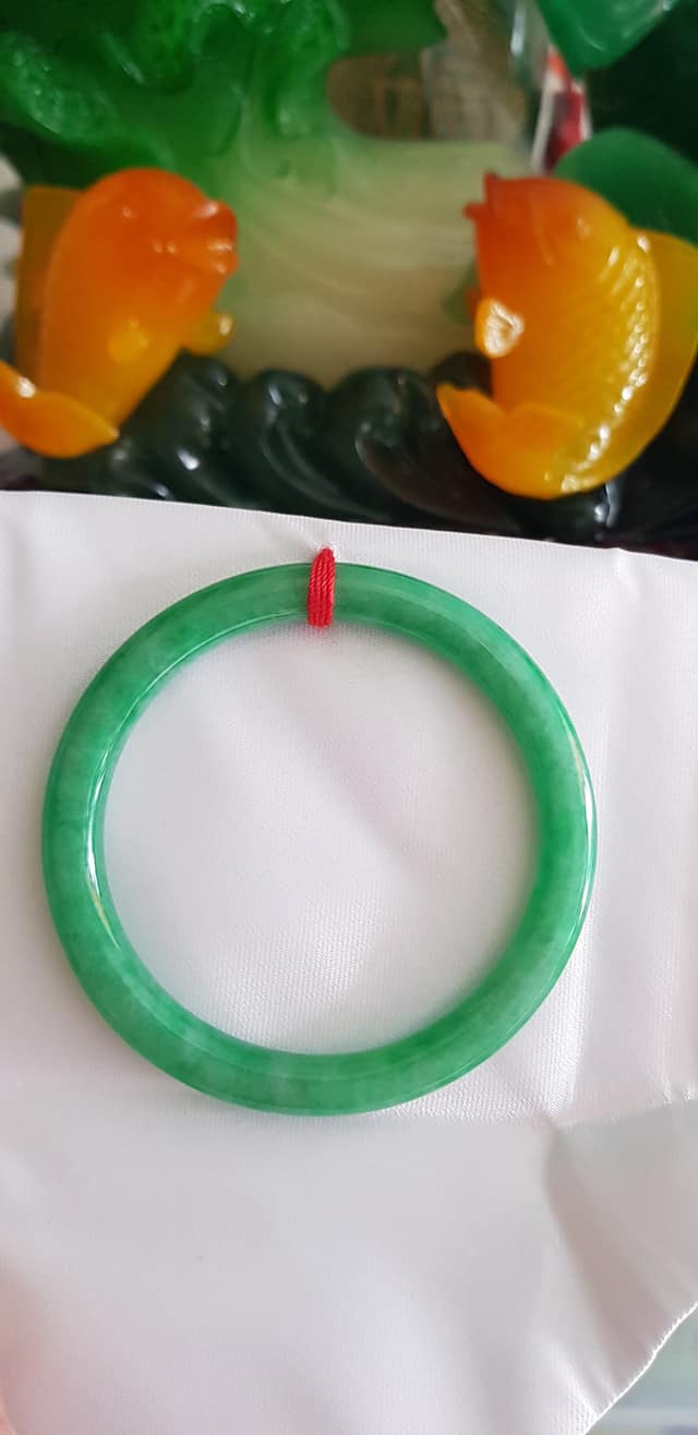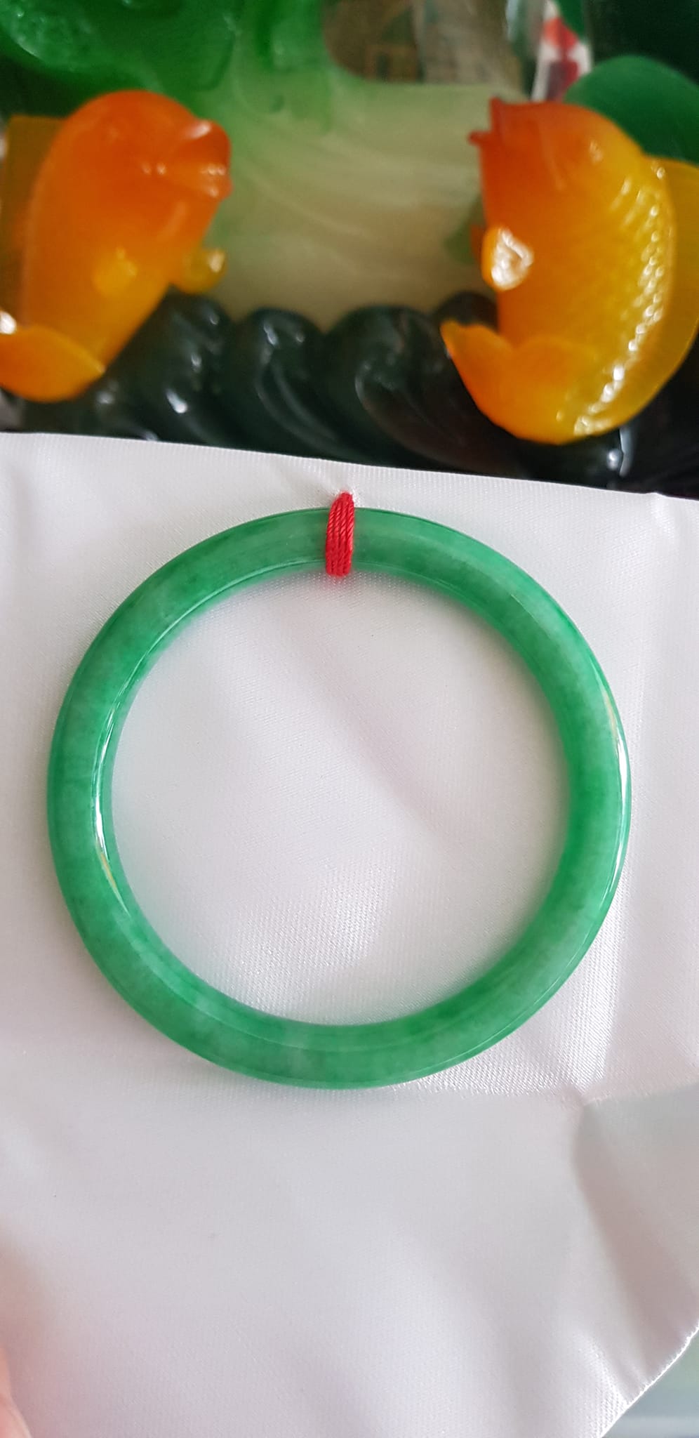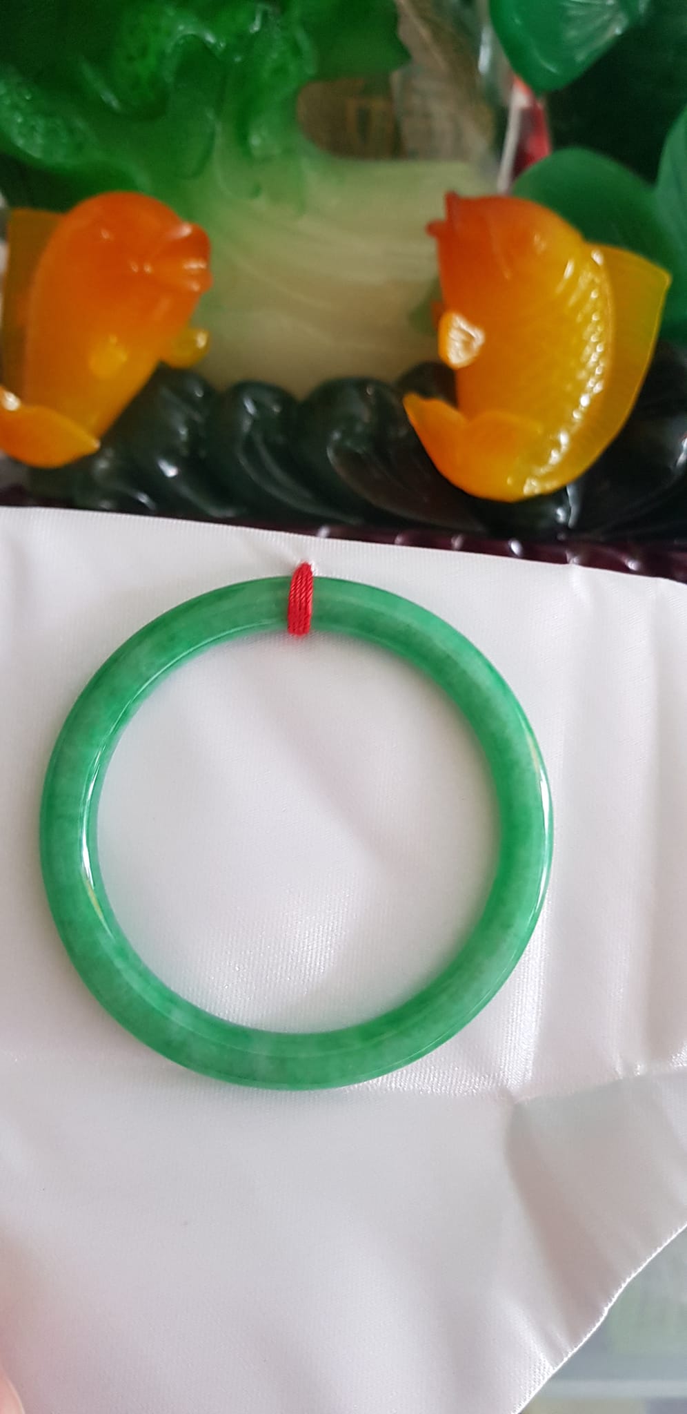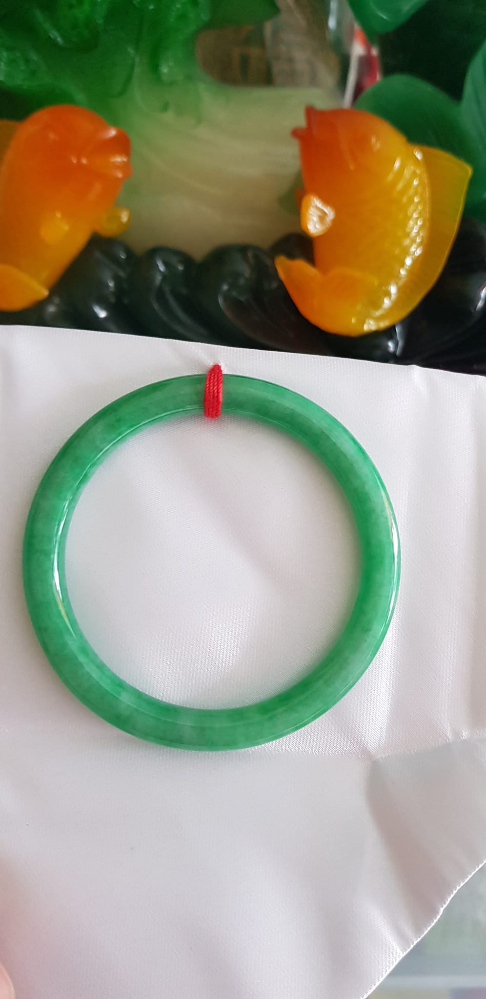 Cặp Vòng Cẩm Thạch tròn 51mm x 6mm Màu xanh ngọc đậm bóng đẹp ạ Nữ mệnh Mộc Hỏa Thủy 50kg - 56kg ạ