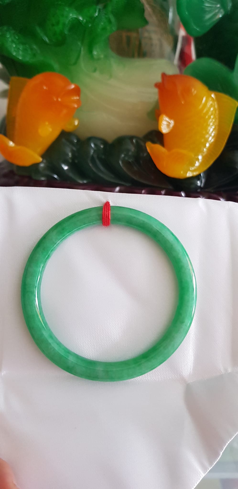 Vòng tay Nữ Đá Cẩm Thạch mới TR Lý 57 mm x cọng 7,5mm Màu Xanh lý tươi trắng 2 bên đều vòng đẹp Nữ 55kg - 64kg đeo đẹp món quà tặng chính mình