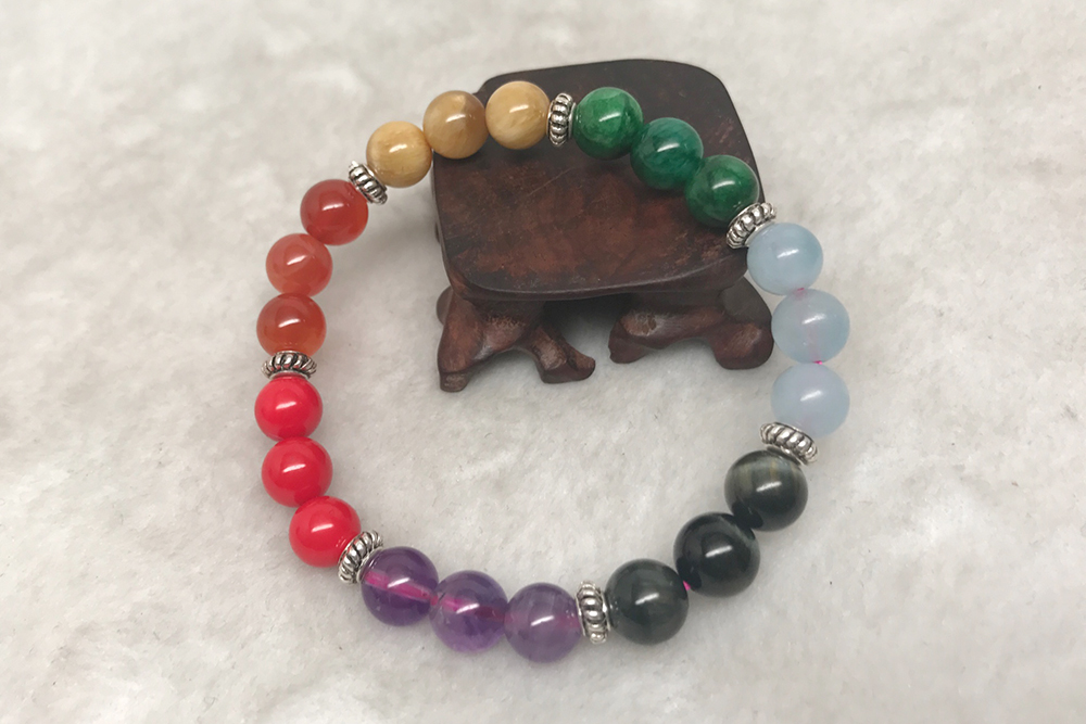 Vòng tay 7 Chakra kết hợp giữa 7 loại đá tự nhiên mix Charm bạc 925