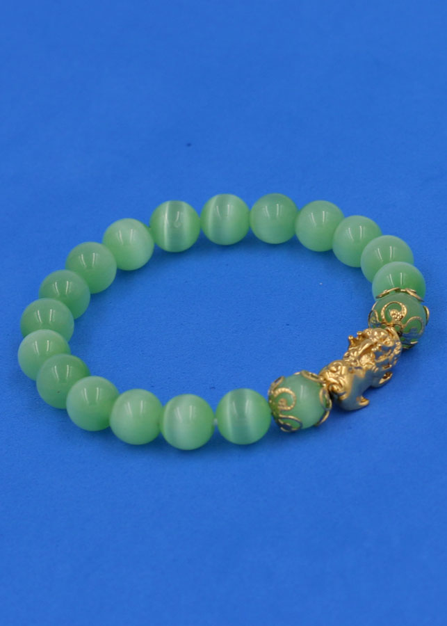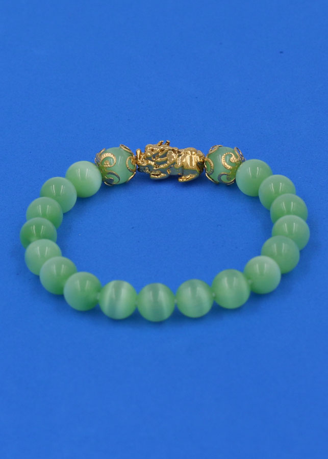 Màu xanh lá luôn đem lại cho ta cảm giác thoải mái tự nhiên nó là tượng trưng của hoà thuận, phát triển cùng với sự tươi mát, màu mỡ. Màu sắc này cũng còn tượng trưng cho sự thông thái.Là màu sắc mang lại cảm giác an toàn và yên ổn. Các bạn có thể thấy các đèn tín hiệu trong giao thông sử dụng màu xanh để báo hiệu an toàn cho các phương tiện di chuyển. Màu xanh của đá mắt mèo này còn mang đến sự nhẹ nhàng với đôi mắt nó mang ý nghĩa của sự hy vọng và phát triển.Đá Mắt Mèo phong thuỷ màu xanh lá rất hợp với người mệnh Hoả nó sẽ mang đến bạn cảm giác tràn đầy sức sống, tươi mát giúp bạn thoải mái trong công việc kinh doanh và học tập.
