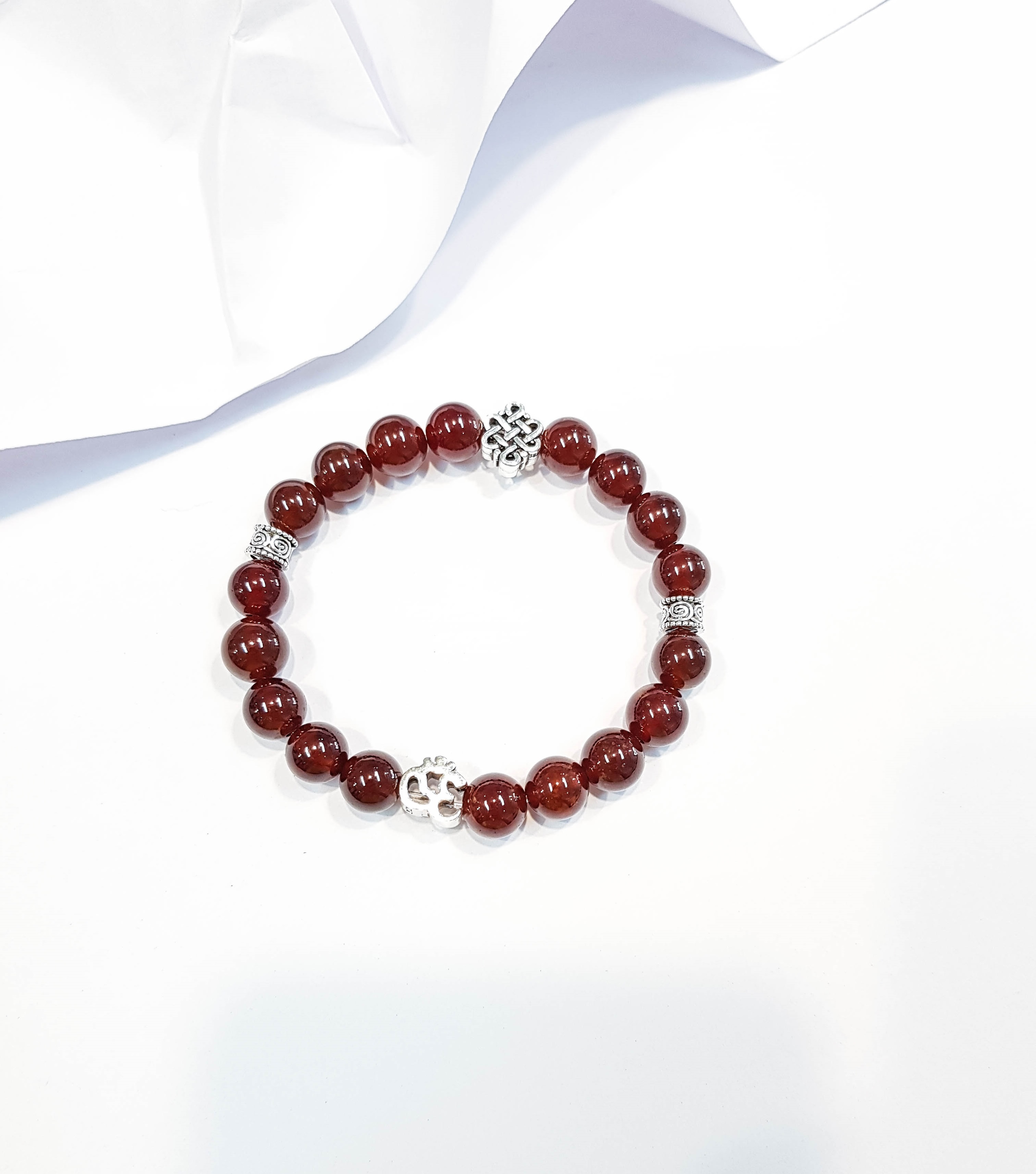 Vòng tay mệnh Hỏa , Thổ đá Garnet charm Om và Đồng TâmVòng tay mệnh Hỏa , Thổ đá Garnet charm Om và Đồng TâmVòng tay mệnh Hỏa , Thổ đá Garnet charm Om và Đồng Tâm
