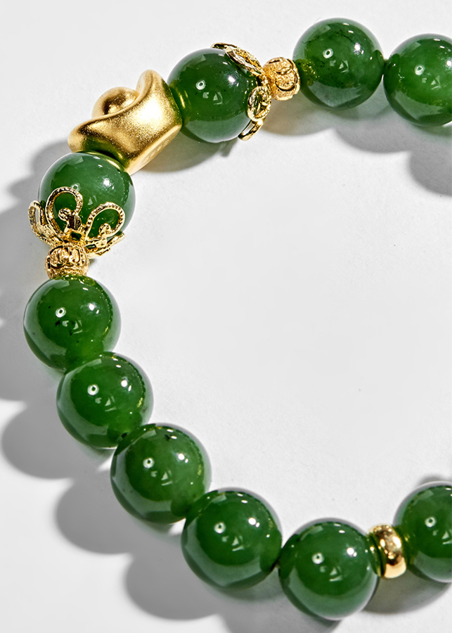 Vòng tay phong ngọc bích mạ vàng 18k đem lại may mắn an lành, toát lên vẻ cao sang phú quý