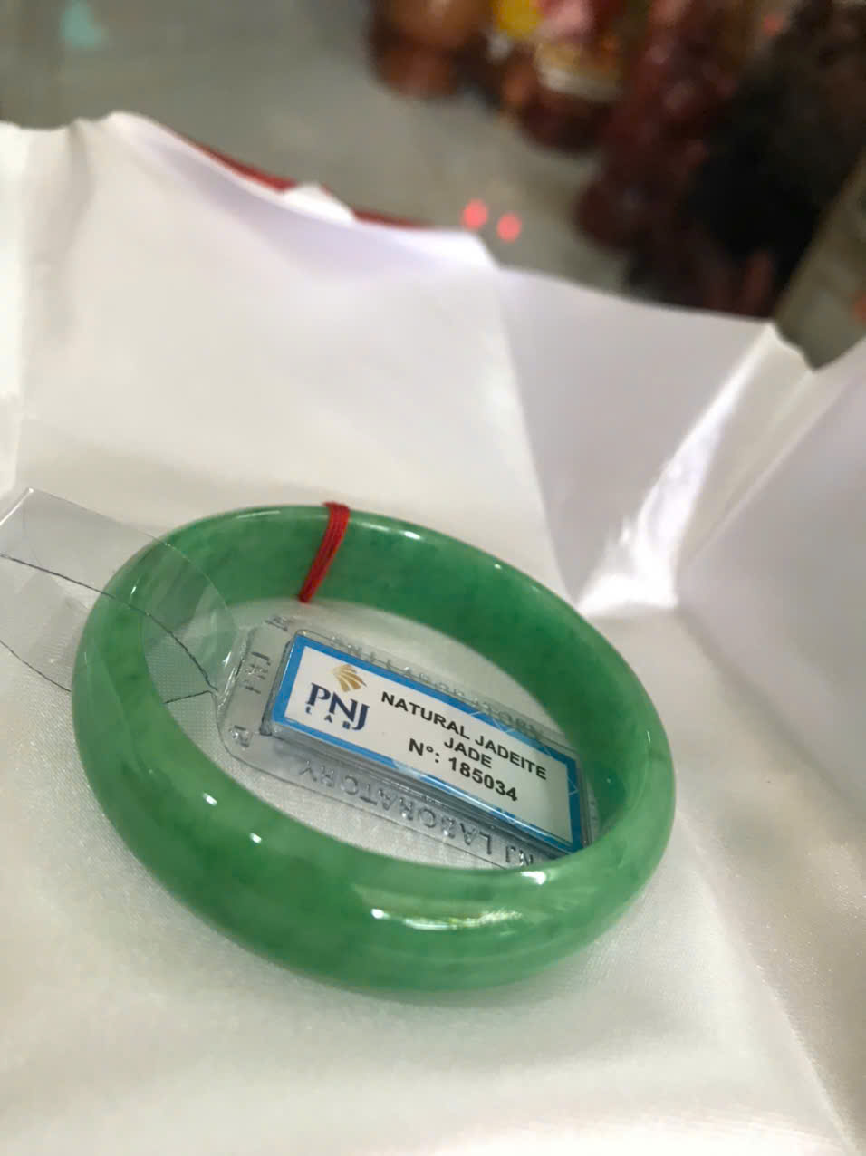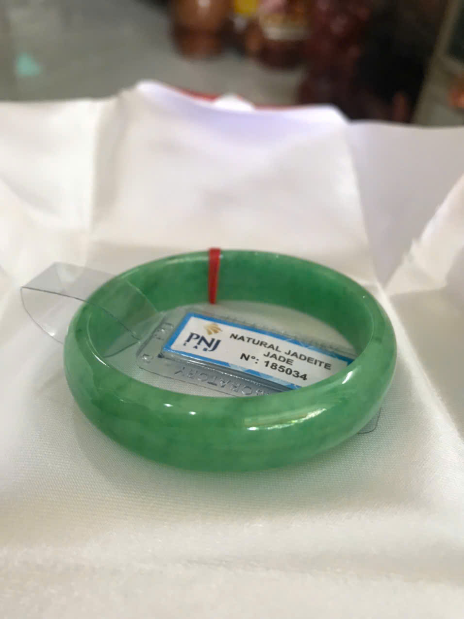 Vòng Tay Nữ Đá Ngọc Cẩm Thạch Bản Hẹ Sịn Đậu Lý Sao Ni 48mm Cao 12mm D6mm đã kiểm định Pnj No 185034