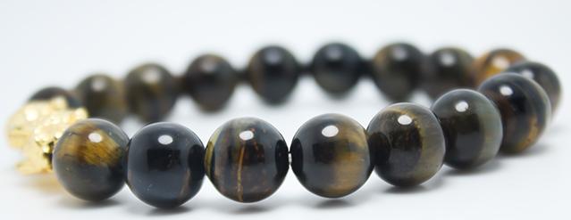 Trong phong thủy, đá mắt hổ được coi là vật mang đến may mắn, thịnh vượng, sự dũng mãnh và giúp phòng trừ tiểu nhân, hóa giải sát khí cho gia chủ. Ngoài ra vòng đá mix với Tỳ hưu là 1 trong 9 loài con của Long Vương. Tỳ hưu rất dũng mãnh có tác dụng cầu tài và giữ của.