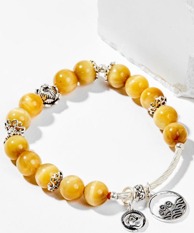 Vòng tay thiên nhiên đá mắt hổ vàng tâm phối charm bạc - Hợp mệnh kim, thổ | Ngọc Quý Gemstones |