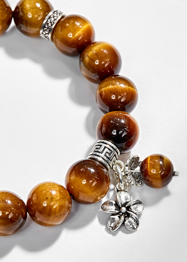 • Vòng tay thạch anh mắt hổ vàng nâu phối hồ ly & hoa 5 cánh (10mm) mang lại sự tự tin, dũng khí và giúp cho con người quyết đoán hơn trong công việc, đem đến sự thành công.