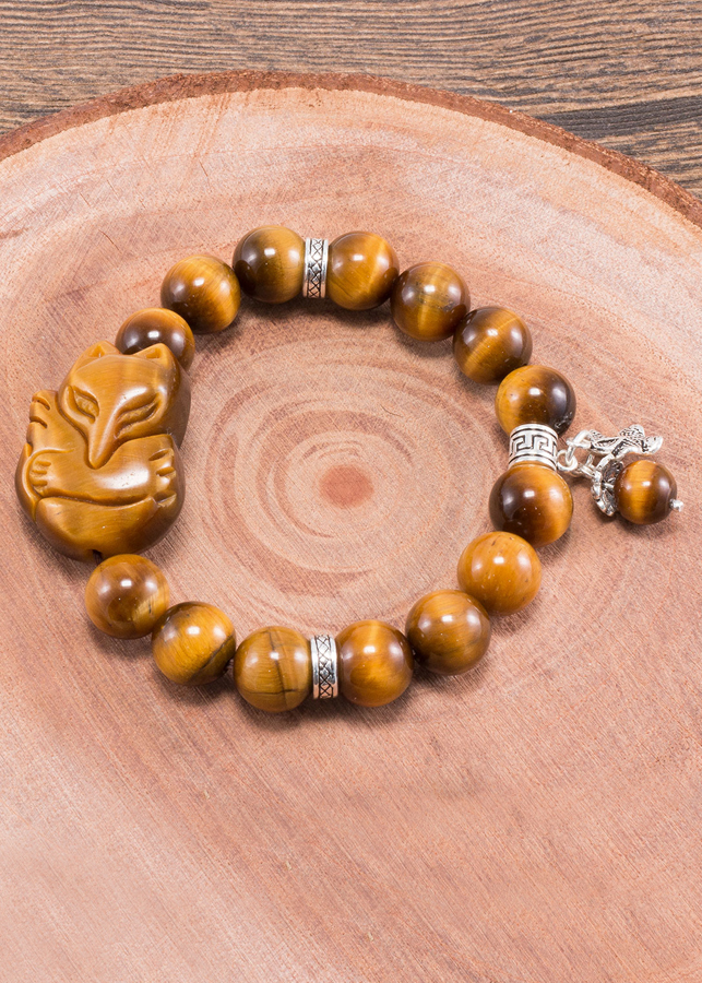 • Vòng tay thạch anh mắt hổ vàng nâu phối hồ ly & hoa 5 cánh (10mm) hợp với người mệnh Kim và mệnh Thổ, mang đến nhiều may mắn và giúp người đeo chạm được đến với năng lượng của vũ trụ.