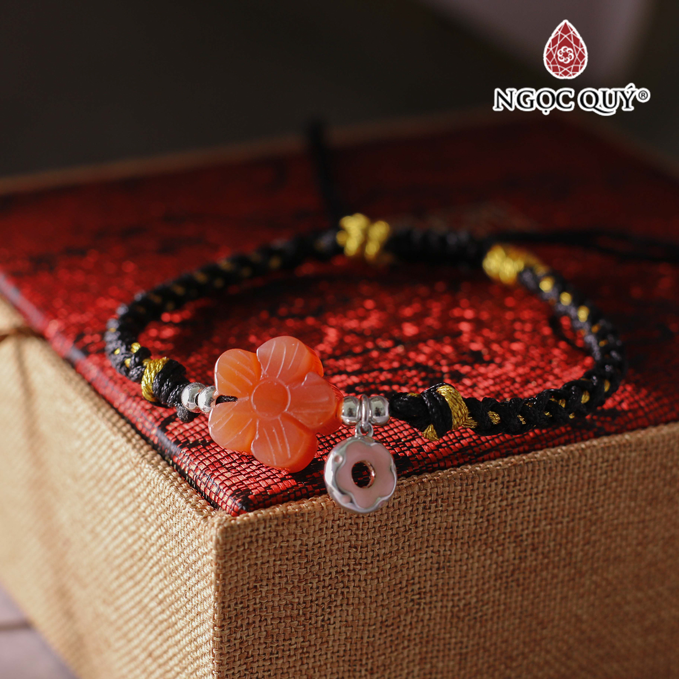 Vòng tay phong thủy Mã Não đỏ 6mm + 3 lu ngọc by ANQLO được chế tác 100% từ đá mã não tự nhiên, Đá mã não có tác dụng giảm căng thẳng, lo lắng,