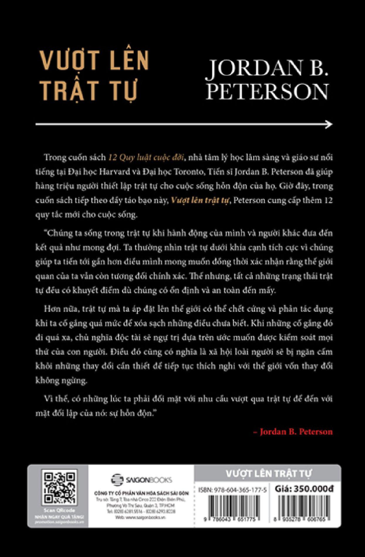 Vượt Lên Trật Tự - 12 Quy Tắc Cho Cuộc Sống - Beyond BEYOND ORDER- VƯỢT LÊN TRẬT TỰ - “Vaccine” Nào Giúp Chúng Ta Sống Tốt Giữa Cuộc Đời Bất Định? “Ta phải đối diện với những hỗn độn liên tiếp này như thế nào?” Chúng ta đang sống trong một thế giới có nhiều tổn thương bởi dịch bệnh, thảm hoa, thiên tai, nguy cơ chiến tranh, sự chia rẽ giàu – nghèo… Lần đầu tiên từ mấy thập kỷ nay, xã hội lại phải đối đầu với nhiều cuộc khủng hoảng đến cùng một lúc. Điều này không khỏi khiến ta hoang mang tự đặt câu hỏi: “Ta phải đối diện với những hỗn độn liên tiếp này như thế nào?” Nhưng “Sự thật là thế giới luôn tồn tại những điều ta không biết và không thể dự đoán trước. Hỗn độn là sự bất thường, sự mới mẻ, sự bất định, sự biến đổi, sự đột biến, và sự thoái hóa khi những gì ta xem là hiển nhiên bỗng trở nên lung lay, nghiêng ngả.” Bản chất của cuộc sống vốn là bất định, nhưng gần như con người có khuynh hướng bẩm sinh thích những thứ “mang tính xác định", chúng ta luôn cố áp đặt lên thế giới những trật tự mặc dù những hiểu biết về cách thế giới vận hành của con người chưa bao giờ là đủ. Điều này vô hình chung khiến ta chìm trong hốt hoảng, bất lực mỗi khi rơi vào hỗn loạn trong một thế giới luôn biến đổi không ngừng. Chúng ta trở nên yếu đuối và kiệt quệ tinh thần vì những sự đổi thay diễn ra theo cách ta không ngờ tới; vì thế, để có khả năng chống lại những đả kích của biến đổi, chỉ có một cách duy nhất đó là: vượt ra khỏi trật tự để đối diện với hỗn độn. Beyond – Vượt lên trật tự: Liều thuốc giải độc cho vực thẳm và bóng tối Vậy là cuốn sách tiếp – Vượt Lên Trật Tự ra đời như một liều thuốc giải giúp bạn giải quyết những biến động, rối loạn và bất định. Vẫn là 12 quy luật, nhưng khác với “12 rules for life”, 12 bộ quy tắc củhư một “cứu cánh” giúp bạn nhận ra rằng trật tự thực ra rất mong manh, rằng “Con người vốn yếu đuối. Vì thế, cuộc sống luôn khó khăn và đau khổ thì đầy rẫy.” Và “để xoa dịu những khổ đau đó (như đảm bảo mọi người đều có đủ thức ăn, nước sạch và một nơi ở đàng hoàng, sạch sẽ), chúng ta cần đến sự mạnh dạn sáng tạo, nỗ lực và năng lực.” Với quyển sách này, bạn không cần đọc từ chương đầu đến chương cuối, chỉ cần lật giở một trang sách bất kì, bạn sẽ nhận được những kỹ năng đương đầu với rủi ro, hỗn độn . Xuyên suốt 12 quy luật là thông điệp có giá trị từ Kinh Thánh, từ những biến cố, các câu chuyện thực tế trong chính cuộc sống của tác giả.12 quy tắc của giáo sư Peterson huyến khích người đọc tiếp cận với lĩnh vực xa hơn. Đây là điều cần thiết để thích nghi với một thế giới luôn thay đổi. Những quy tắc này sẽ là kim chỉ nam giúp bạn tìm thấy mấu chốt cho câu hỏi: Ta phải làm gì khi rơi vào nghịch cảnh? 12 quy tắc của giáo sư Peterson huyến khích người đọc tiếp cận với lĩnh vực xa hơn. Đây là điều cần thiết để thích nghi với một thế giới luôn thay đổi. Vì suy cho cùng, có bao nhiêu người dễ dàng đi qua những đau khổ, bệnh tật, tai ương mà vẫn học được cách vượt lên và đối diện với nó? Cách duy nhất đó là hãy chuẩn bị trước cho những hỗn độn sẽ có thể xuất hiện vào lúc chúng ta mất cảnh giác nhất, để từ đó, bạn biết cách “giữ lòng biết ơn giữa nghịch cảnh” trong kỷ nguyên đầy bất định này.