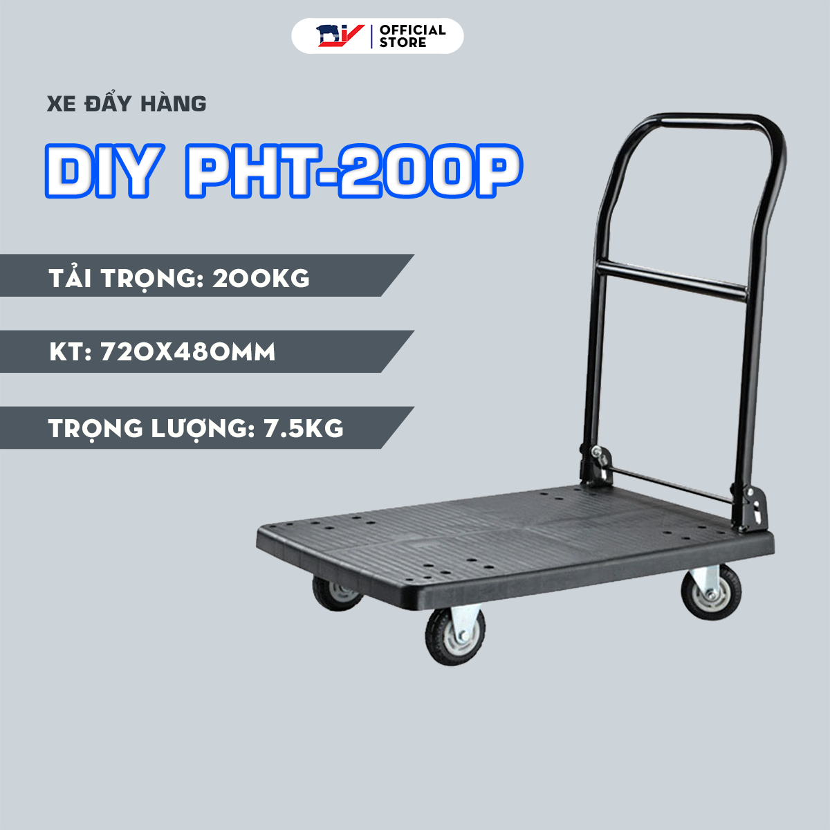 Xe đẩy hàng DIY PHT-150S là một dụng cụ hỗ trợ có thể dễ dàng được tìm thấy tại nhiều siêu thị, nhà kho, bến bãi,… lớn tại Việt Nam. Thương hiệu DIY là một trong