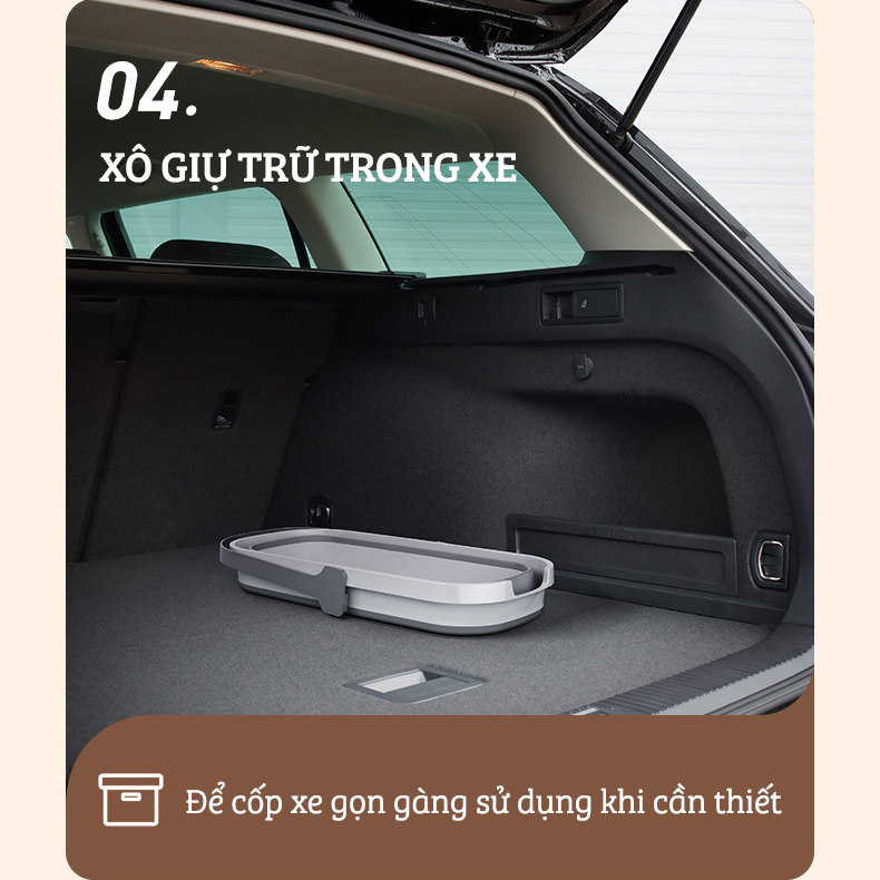 Xô đựng nước gấp gọn đa năng có thể sử dụng cho nhiều mục đích khác nhau như: lau nhà, lau kính, vệ sinh nhà cửa, lau chùi ô tô hoặc quý khách hàng có